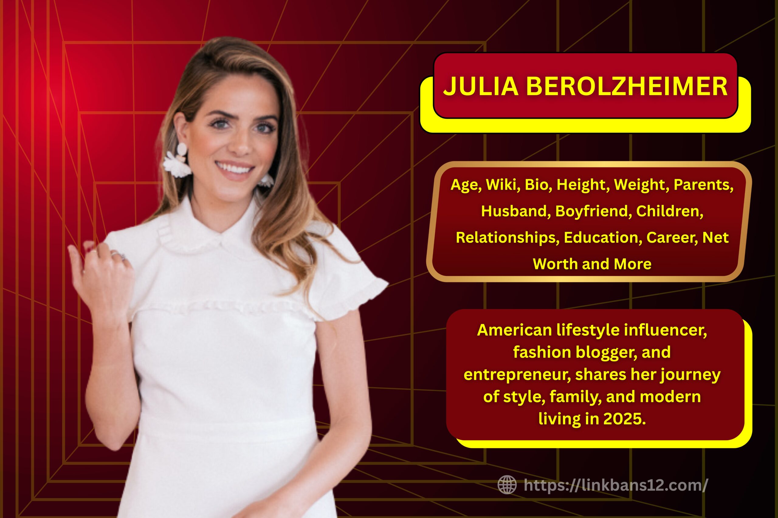 Through her Gal Meets Glam Collection and ongoing brand partnerships, Julia demonstrated her passion for timeless beauty and refined design. Her influence across social media continues to grow, making her a symbol of modern elegance and entrepreneurial vision. By 2025, Julia Berolzheimer remains a respected figure whose creative storytelling, family values, and authenticity have shaped her as one of America’s most influential lifestyle personalities.